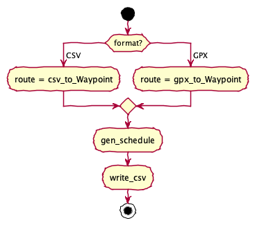 The input parsing supports two formats: CSV and GPX. Each source format has